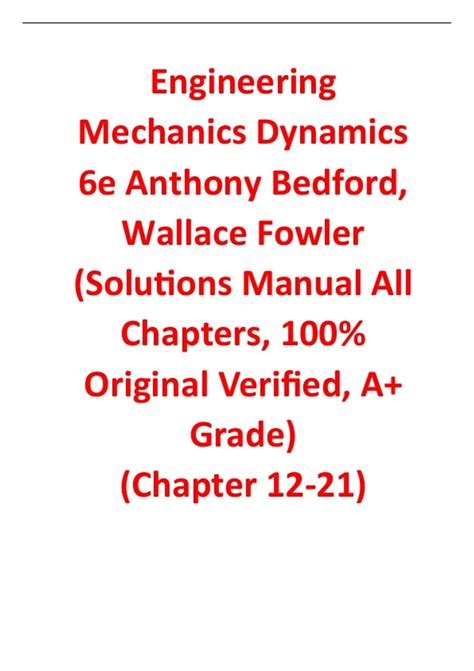 Read Online ENGINEERING MECHANICS DYNAMICS BEDFORD FOWLER SOLUTIONS MANUAL Kobo Open Library